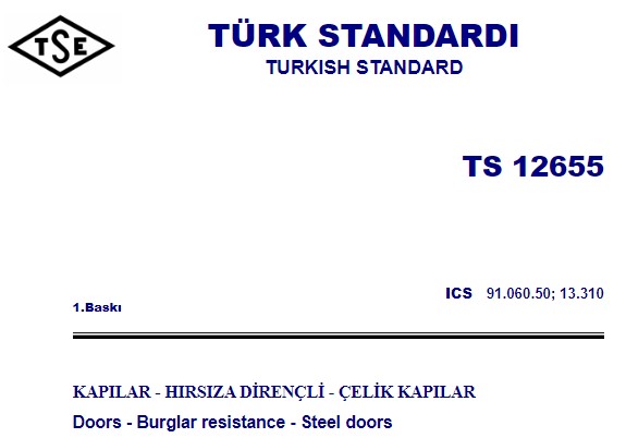 TS 12655 Kapılar - Hırsıza dirençli - Çelik kapılar
