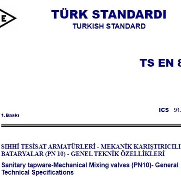 5. Sonuç TS EN 817 standardı, mekanik karıştırıcılı bataryaların güvenli, dayanıklı ve verimli olmasını sağlamak amacıyla detaylı teknik gereksinimler ve test yöntemleri sunar. Bu standart, üreticilerin kaliteli ürünler üretmesine, kullanıcıların ise güvenli ve uzun ömürlü bataryalar kullanmasına katkıda bulunur.